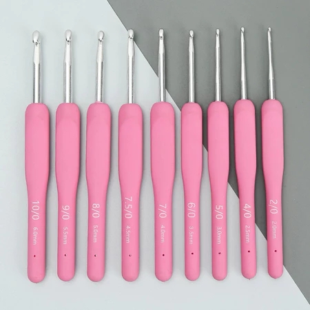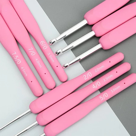 - Cán dẻo màu hồng mềm mại, cầm chắc tay, không mỏi khi móc lâu