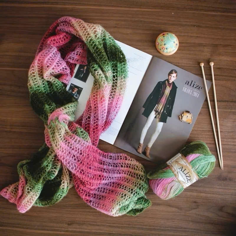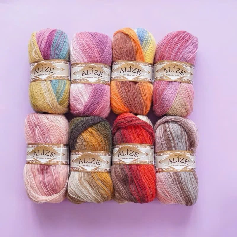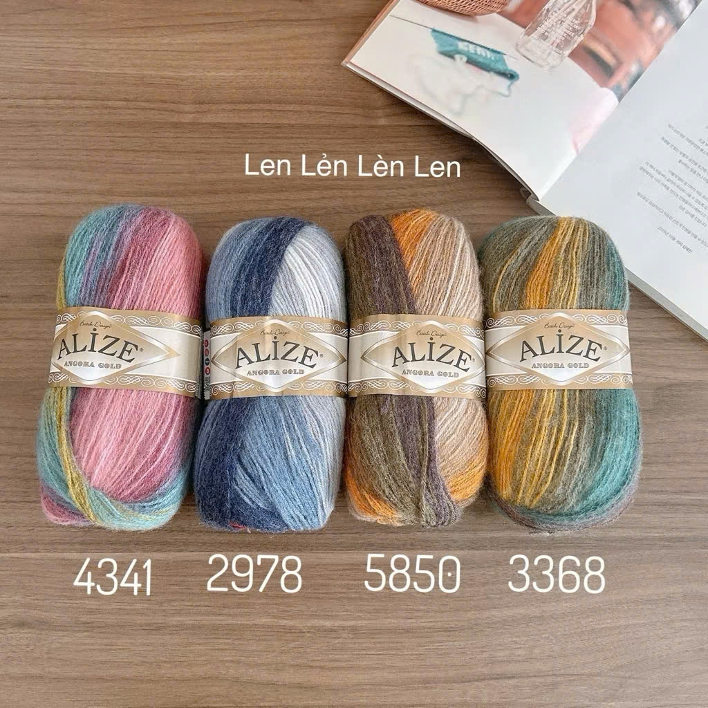 Alize Angora Gold Batik loang màu dòng len có nguồn gốc từ loài thỏ Angora. Sợi len mềm, mịn, mỏng và rất bông. Loại len này phù hợp với việc đan móc khăn choàng (Shawl/Wrap) vì độ mềm, nhẹ cũng như độ ấm cần thiết. Bạn nên móc lỏng tay và xài kim móc size bự hơn bình thường 1-2 size để sản phẩm lên có độ mềm và rũ. Chỉ cần 2 cuộn len thôi cũng đủ làm một chiếc khăn choàng cho người lớn. Nếu bạn muốn đan hay móc áo thì cần từ 3-4c tuỳ vào kiểu dáng và độ dài của sản phẩm. Cuộn 100g, dài 550m nên rất dôi. Bình thường nếu shop móc khăn tam giác thì xài kim móc 4-5mm, hết 2c là đủ một chiếc khăn to dài. Móc áo thì shop xài kim bé hơn 3-3.5mm, hết từ 3-4c.